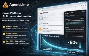 AgentLimb هو ملحق مجاني لمتصفح Chrome مصمم لتعزيز الإنتاجية من خلال ربط وكلاء الذكاء الاصطناعي المحليين بمتصفحك. إنه يقلل بشكل كبير من عدد الرموز المطلوبة للمهام المتكررة بنسبة تصل إلى 85%، مما يسمح للمستخدمين بأداء الإجراءات بشكل أكثر كفاءة. يتعلم الأداة هيكل صفحات الويب عند الزيارة الأولى، حيث تخزن هذه المعلومات محليًا كملفات JSON عادية، والتي يمكن إعادة استخدامها في التفاعلات المستقبلية دون الحاجة إلى إعداد أو تكوين إضافي.